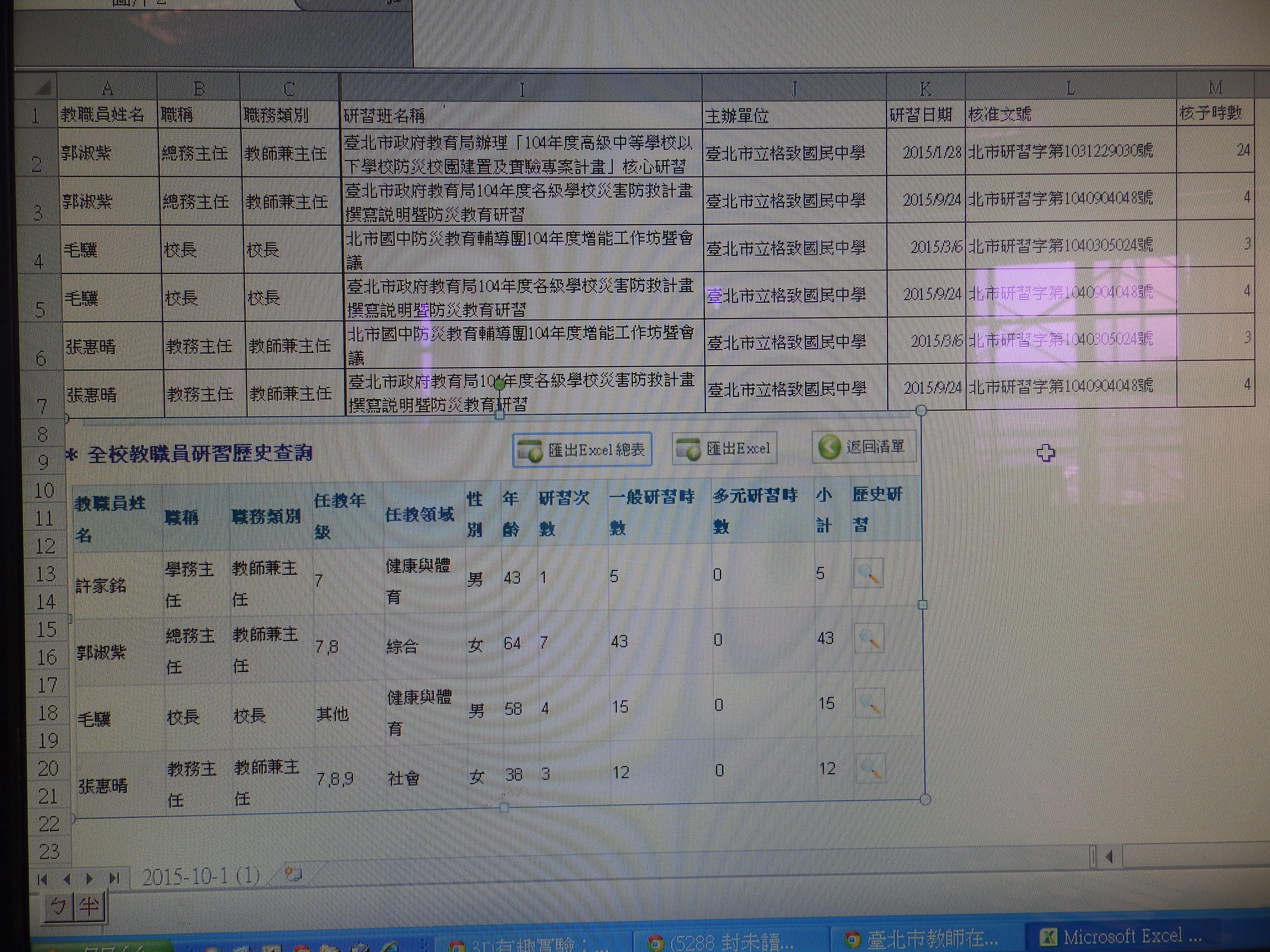 103年防災教育研習人員及時數